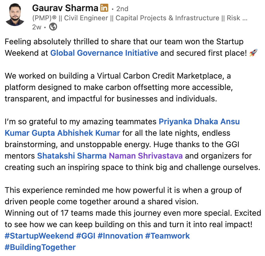 Thank you Shatakshi Sharma and Naman Shrivastava for co-founding Global Governance Initiative and pushing our limits personally and professionally.”